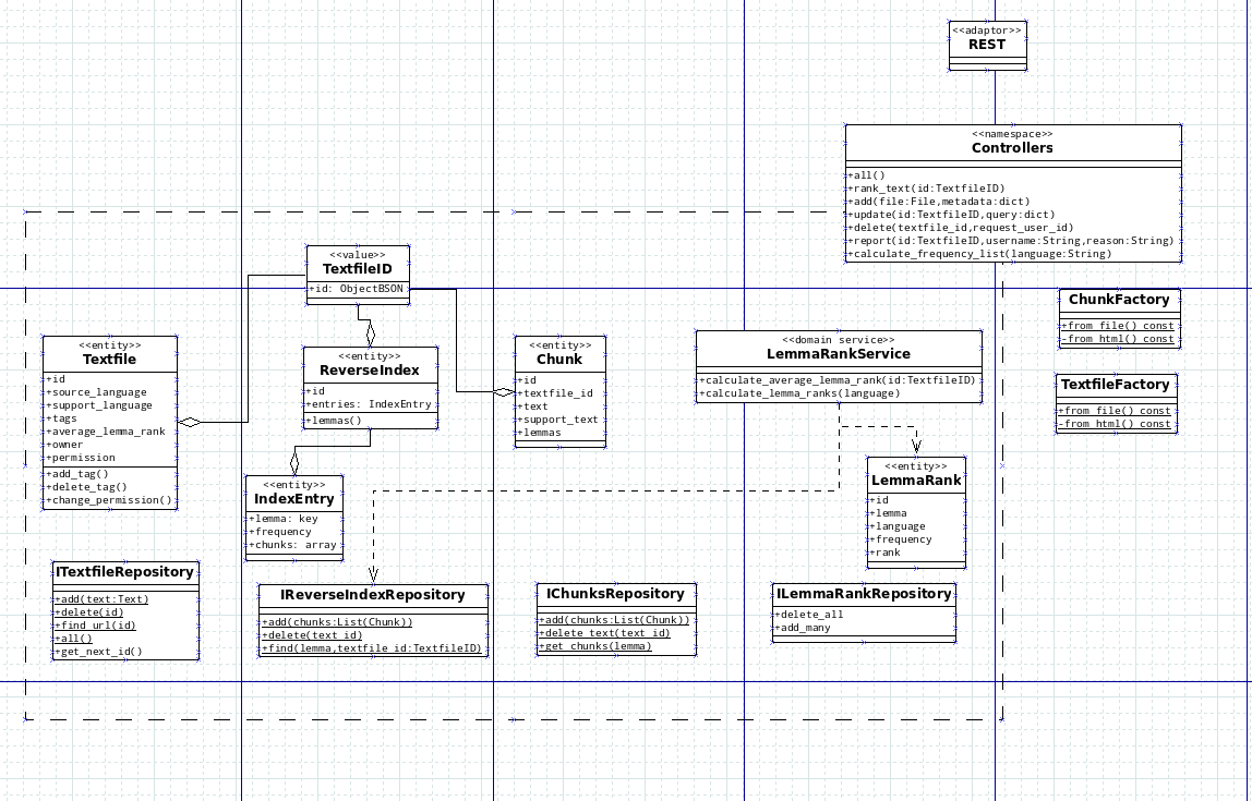 - The library and vocabulary contexts should be merged into a larger texts context. These two contexts are essentially the core of the application: they provide entities for many use cases that have to go around the partition somehow, and it is reasonable to think that will be the case in the future as well. Although merging implies a more complex bounded context, the alternative implies hidden dependencies and APIs which are interdependent (i.e. protocols), and therefore hard to work with.